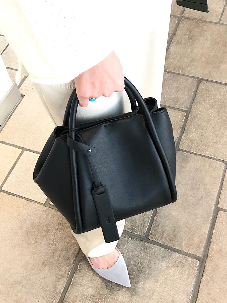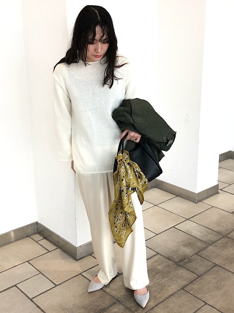 すっきりとしたノーカラーは、キレイめなスタイリングとも好相性◎