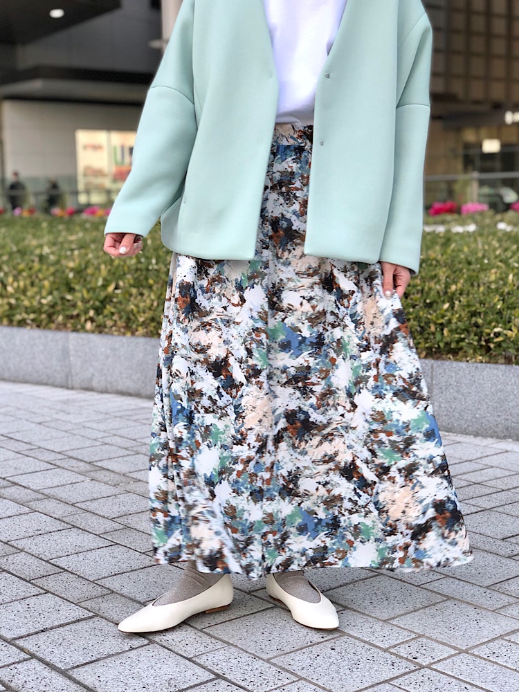 ホワイト×グリーンで爽やかな印象の春コーデです。