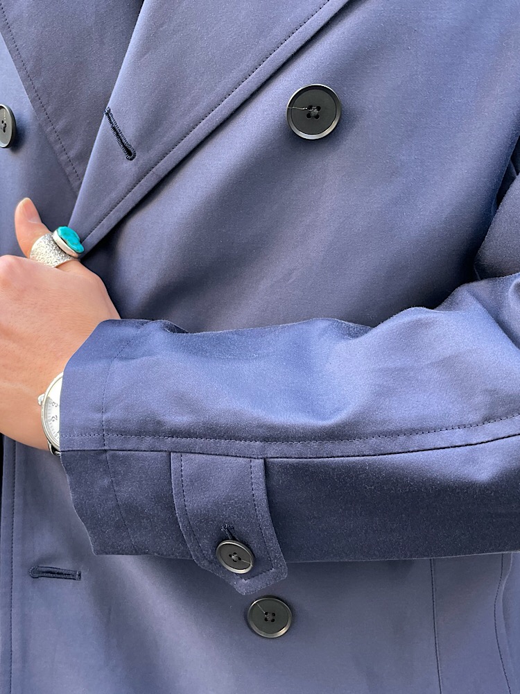 ラグランスリーブのクラシックなトレンチコートです。生地はイタリアの『ロロピアーナ社』のレインシステムを使用しております。