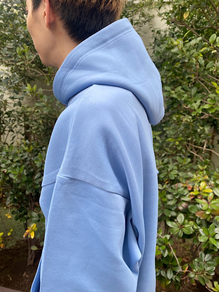 春カラーを取り入れたストリート感があるスタイリングです。ゆったり目のパーカーにゆったり目のベイカーパンツと今らしい組み合わせです。