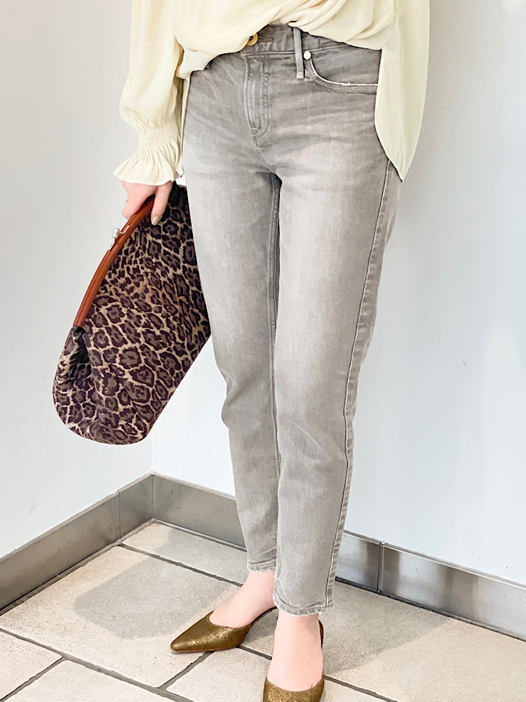素材感・着心地:ストレッチありで伸びのいい素材感。薄めにグレージュでカジュアルすぎず、タイトですが程よいゆとりで履きやすい。