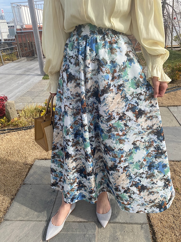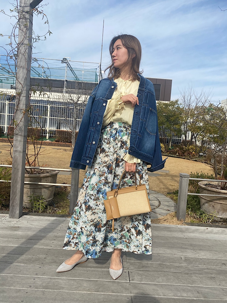 広がりの少ないフレアスカートなのでパーカーやニットなどのアイテムとも相性が良く、カジュアルコーデも楽しめそうです。