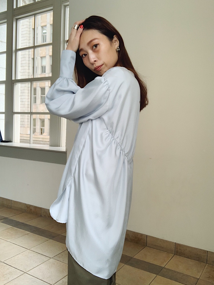 着用アイテム:ブラウス 着用サイズ:ワンサイズ サイズ感:ゆったりめ 素材感:とろみ素材で落ち感があり、サテン生地なので光沢がある。 着用アイテム:パンツ 着用サイズ:38 サイズ感:ハイウエストで、程よくスッキリ見えるシルエット。 素材感:ハリのある生地。裾も絞れ、足首もスッキリ見えるデザイン。