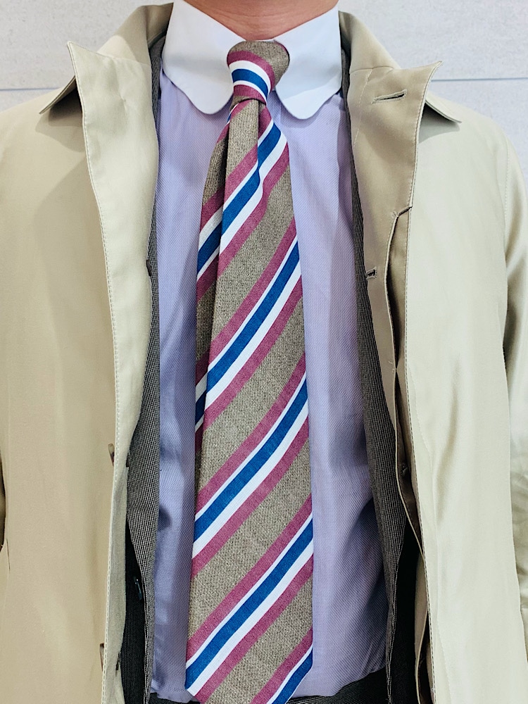 【着用レビュー 】 着用アイテム:コート 身長:172cm / 普段サイズ:S or M/ 着用サイズ:S サイズ感:胸周りに少しゆとりのあるサイズ感。 素材感:柔らかい綿素材。 着心地:軽くて着易い。 春夏の新作のSTEFANO BIGIのネクタイを締めて、旬のグレージュカラーで組みました。