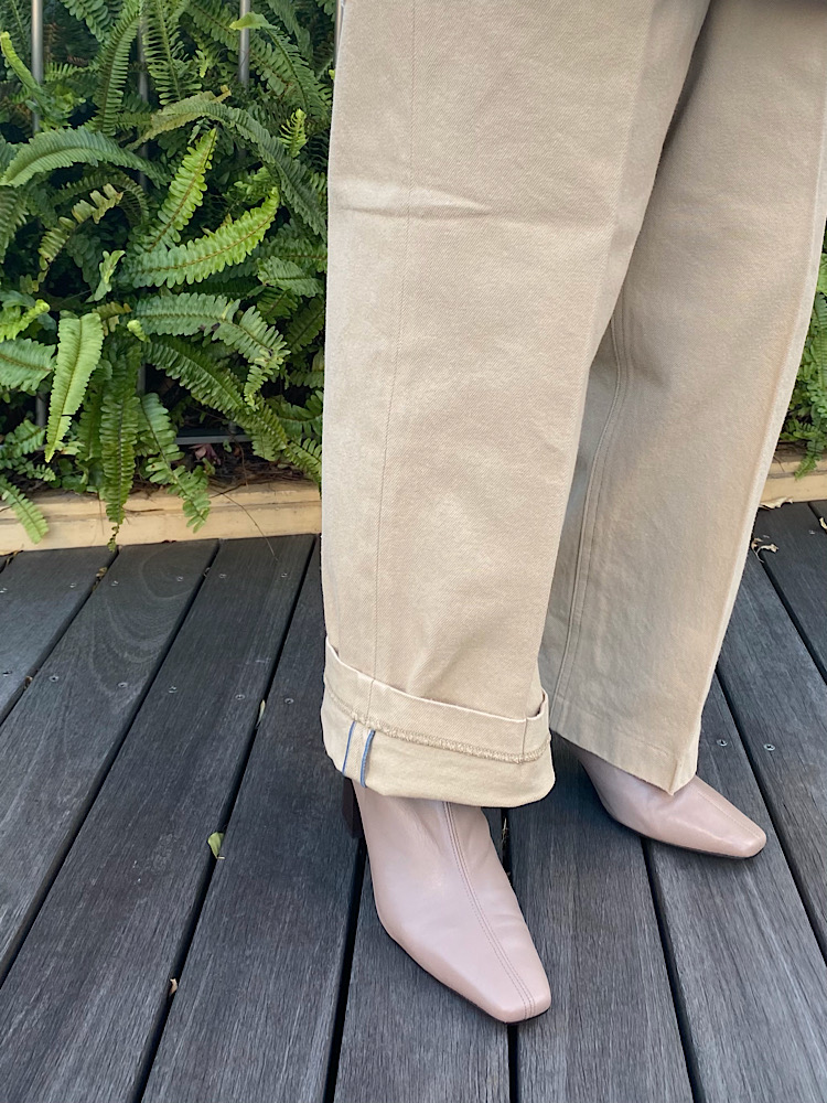 素材感・着心地:新作のNEPLA。天然染料ならではの独特の色を楽しめるチノパンツ。通年着れるコットン素材。