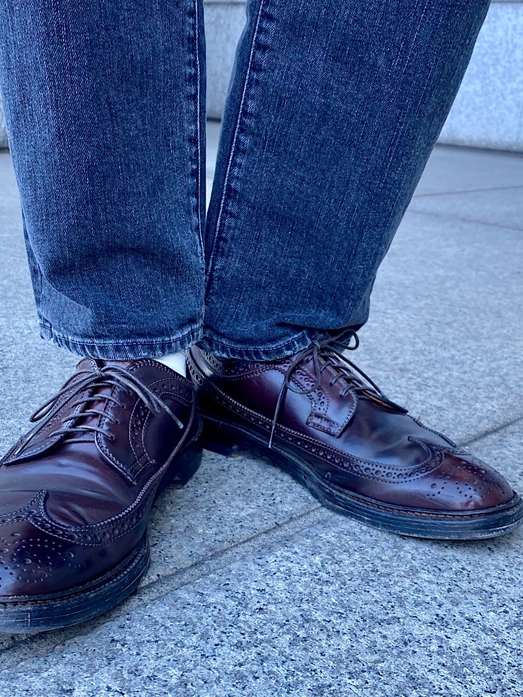デニムの上下を着たかった。 ただし年相応に、カジュアルに見えすぎないようジレと革靴でドレスアップしてみました。 【着用レビュー 】 着用アイテム:Gジャケット、パンツ 身長:173cm / 普段サイズ:M 、M/ 着用サイズ:M、30インチ サイズ感:やや細身のシルエット。 素材感:よく洗濯や加工が施され、柔らかい手触り。 着心地:ストレッチが効いていて見ための印象よりもかなり着心地は楽◎