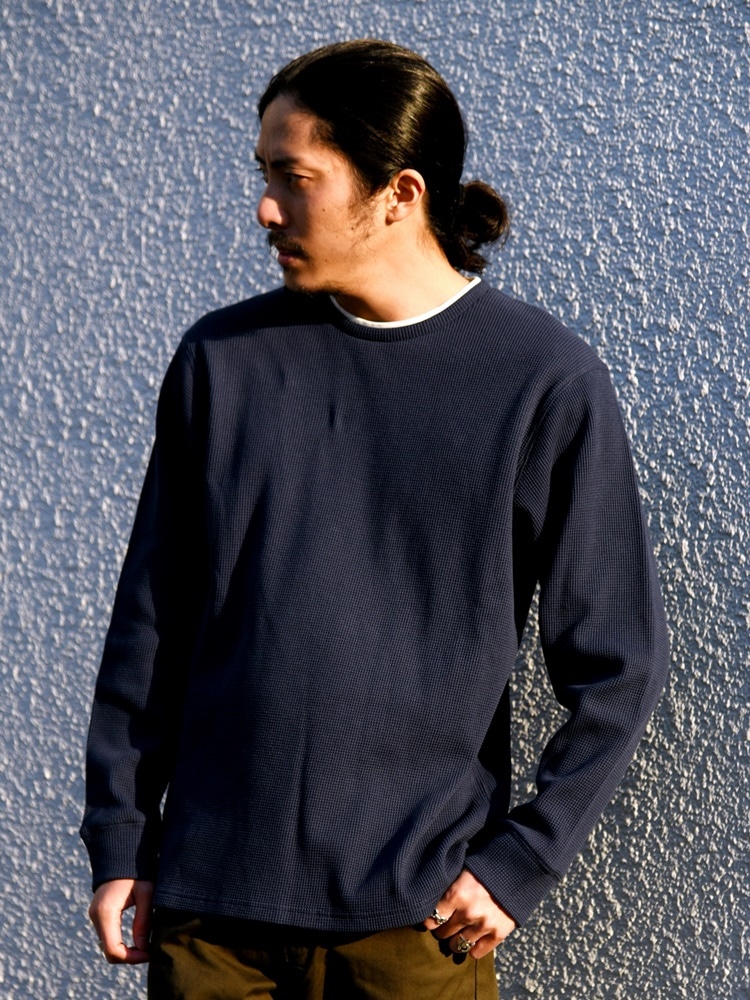 素材感:ワッフル(サーマル)生地に、ネック部分はカットソー生地。