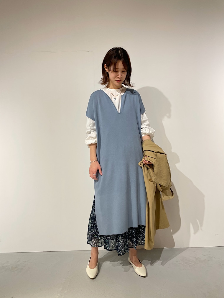 着心地:ニット素材ですが軽く、ワンピースからブラウス、カットソーと幅広いお洋服を重ね着できる。