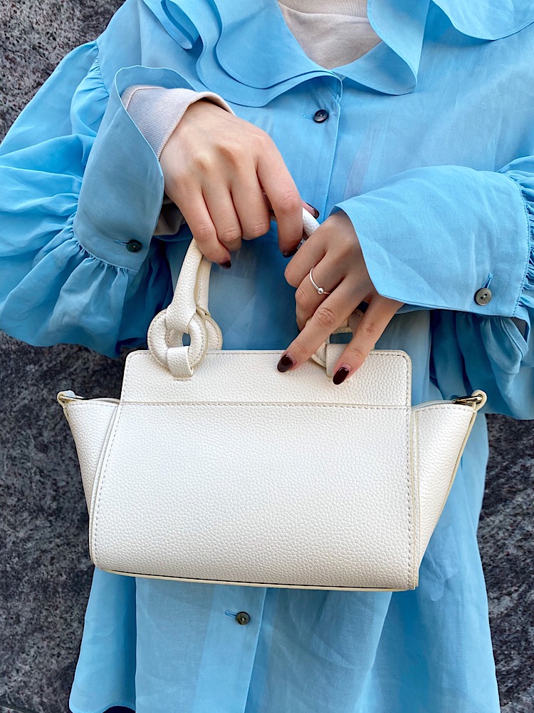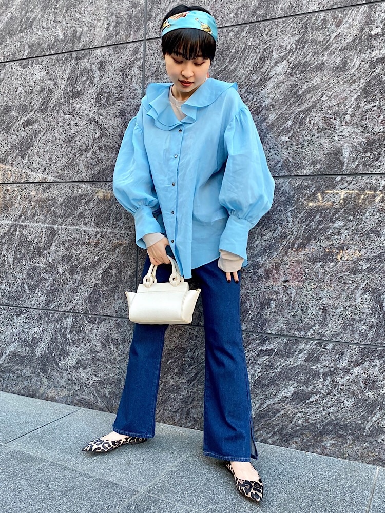 襟がボリューミーでかわいいブラウスをメインにコーディネート◎