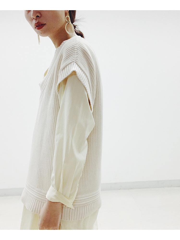着用アイテム:シャツ 着用サイズ:ONE SIZE サイズ感:ゆったり 素材感:コットン素材で肌触りも良い。 着用アイテム:ベスト 着用サイズ:38 サイズ感:ゆったり 素材感:柔らかい素材感。ゆったりしていて色んなアイテムと重ね着が可能。