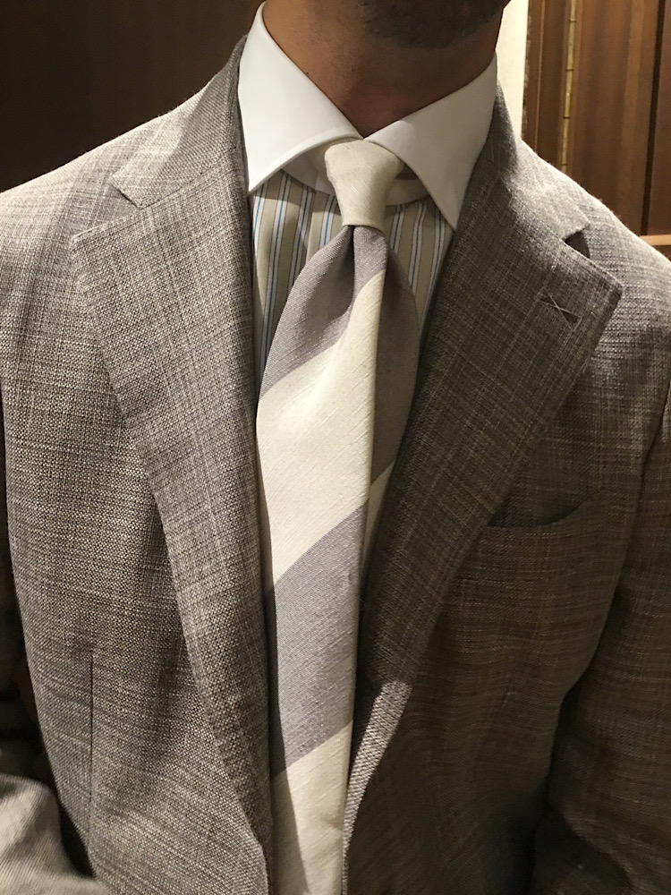 着用アイテム:ジャケット 身長:178cm / 普段サイズ:48 / 着用サイズ:48 サイズ感:適度な絞りにより自然に着用出来るサイズ 素材感:ネップ感のある生地感でカジュアルなパンツとも相性の良い素材です。 着心地:軽量な仕立てなので気温の高い時期にも快適な着心地です。 着用アイテム:パンツ 身長:178cm / 普段サイズ:33 / 着用サイズ:32 サイズ感: 腿周りにゆとりがあり、裾に向かって自然なテーパードシルエット。 ジャストレングスでお直しなしで履けます。 素材感: オールシーズン着用できるウエイト、白ですが透けも気になりません。 着心地:腿周りにゆとりがあり着心地は良いです。 トーンをまとめ上品な印象のジャケット&パンツスタイル デニムを合わせ気取らない仕上がりに。