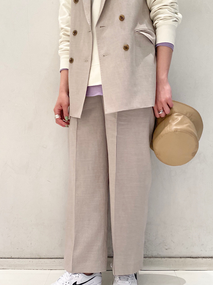 素材感:コットンポリウレタンでロングシーズン着れる。