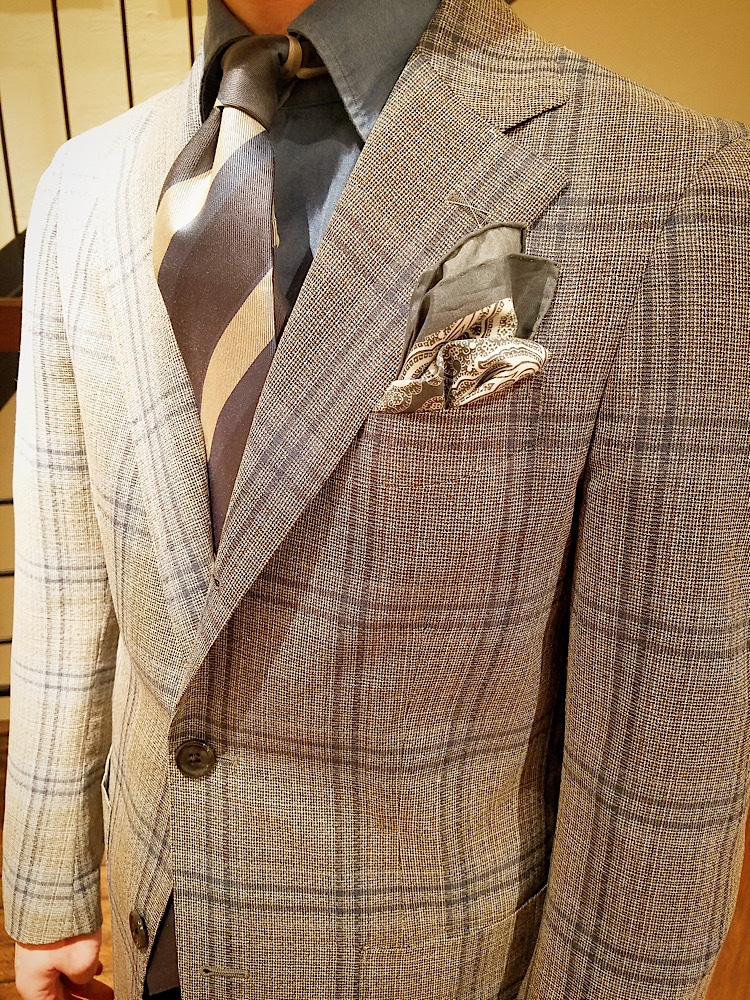 【着用レビュー 】 着用アイテム:ジャケット 普段サイズ:44 / 着用サイズ:44 サイズ感:ウエストを適度に絞ったスマートなシルエット。 素材感:ドライタッチな薄手のウール生地。