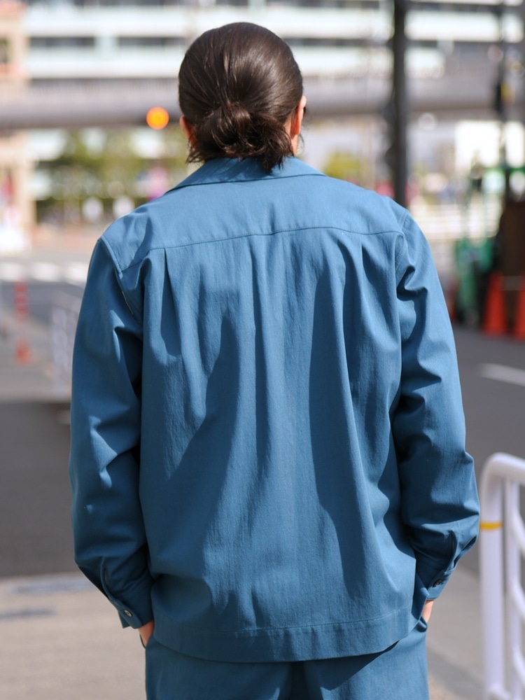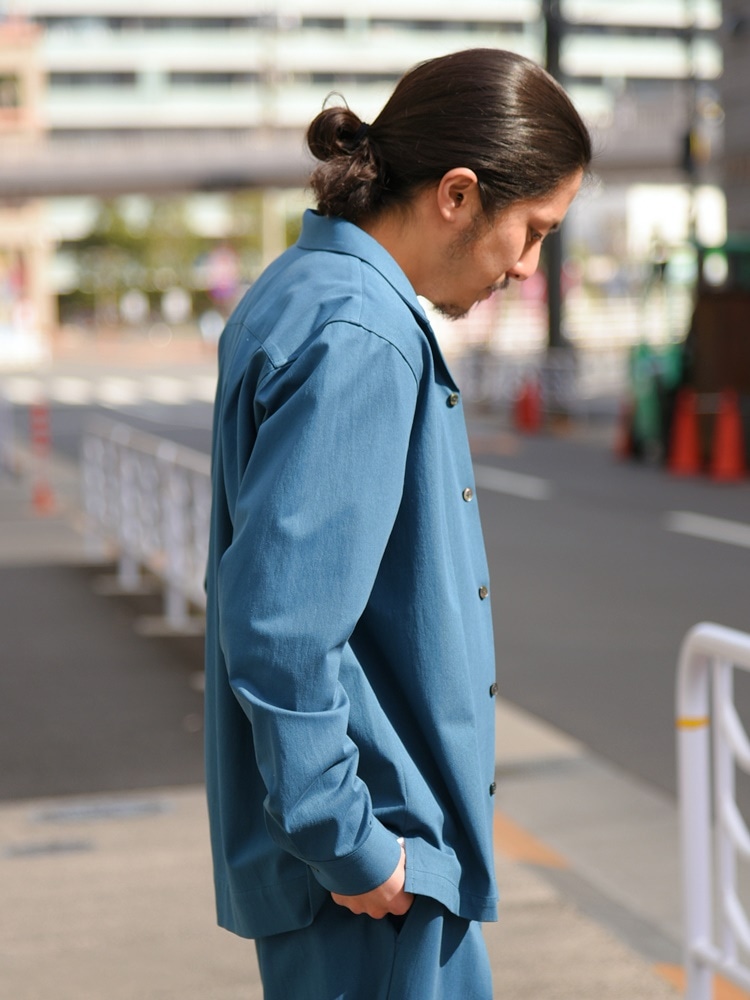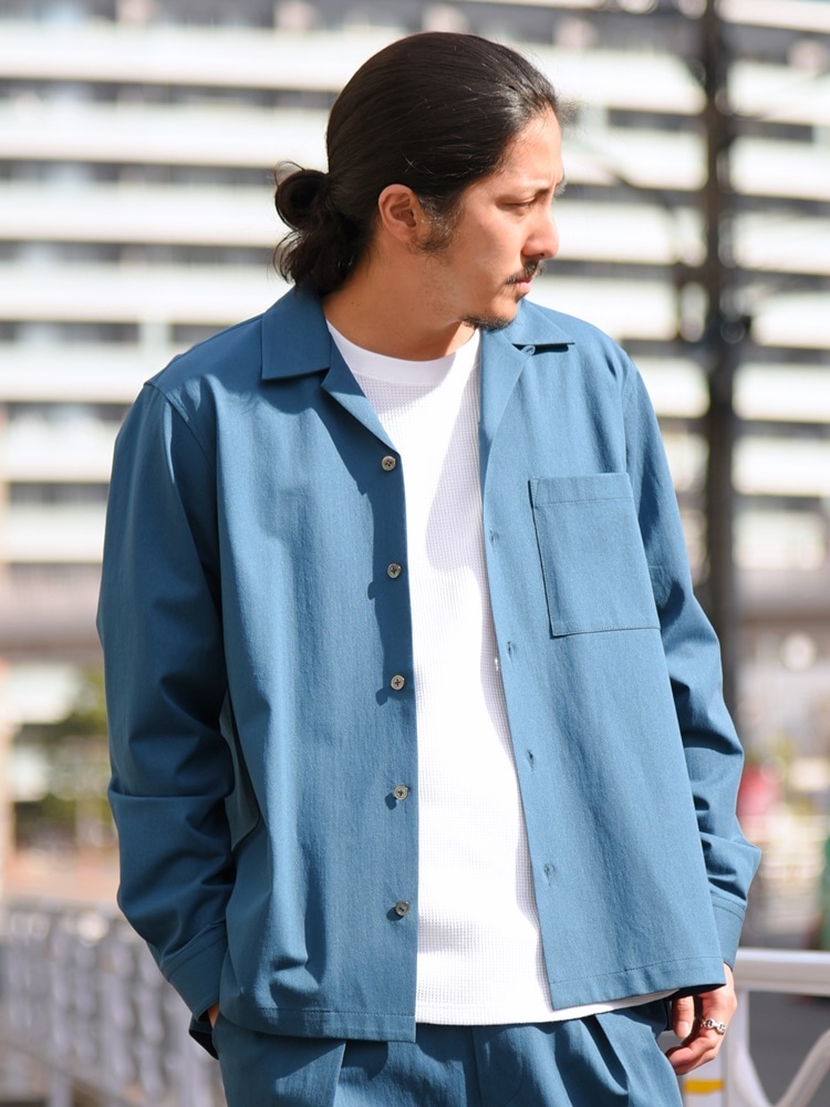 シャリ感のあるオープンカラーシャツのセットアップ