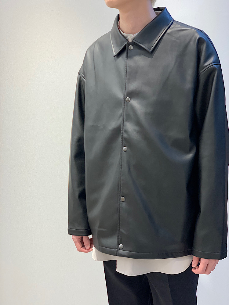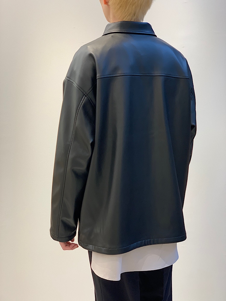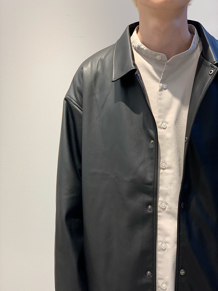 レザーのアウターにシャツを合わせて清潔感を出し、モードっぽくスタイリングしました。