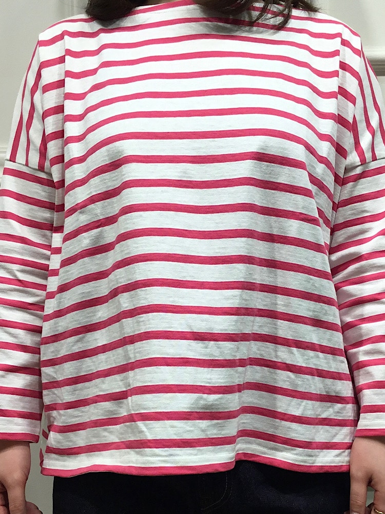 着心地:ボートネックで肩周りが軽やかです。