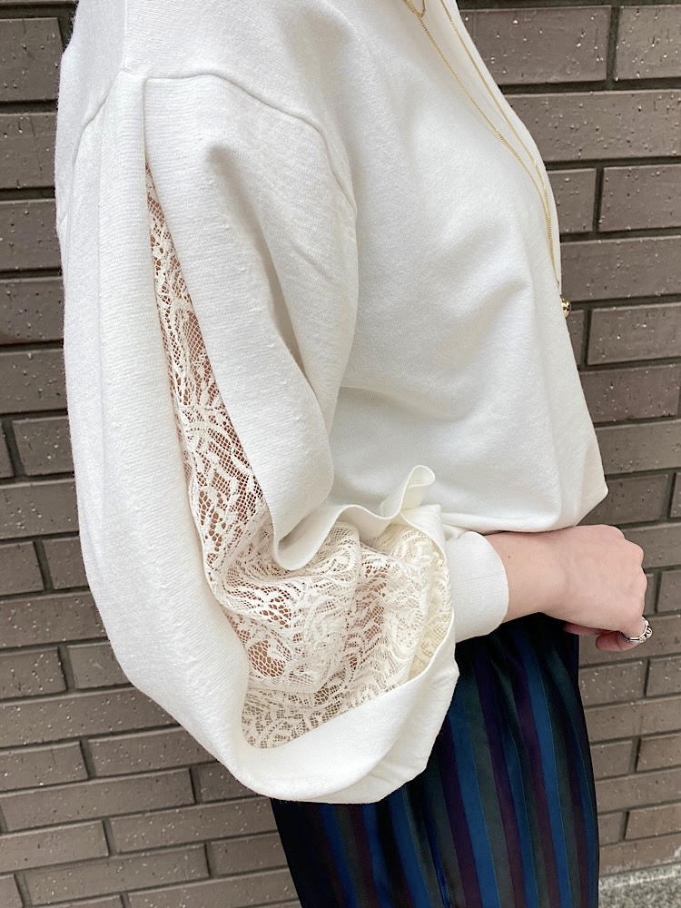 袖のカット部分からレースと肌が程よくのぞく感じなので、
