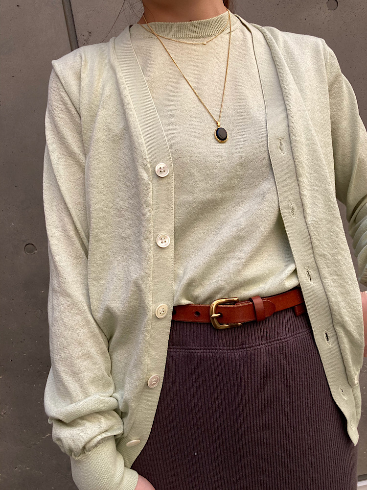 素材感・着心地:ポリエステルが入っているの、サラッとした着心地で合わせやすい。