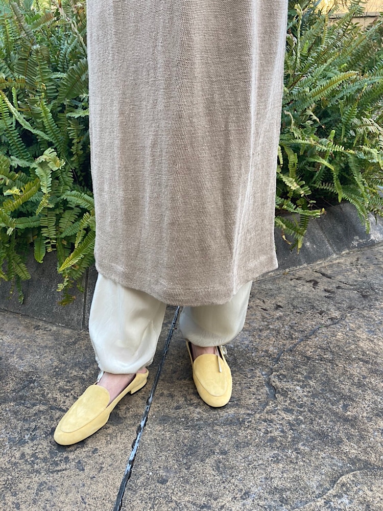 素材感・着心地:ざらっとした麻素材。天然素材ならではのあじが良い。