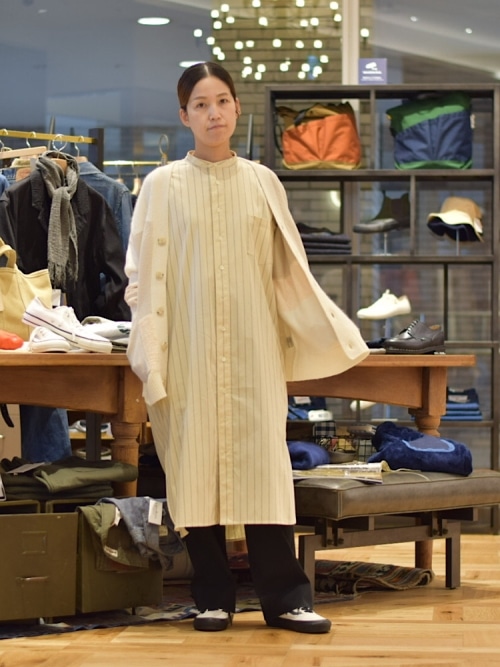 サイズ感:膝下までの着丈で身長を選ばない長さ。