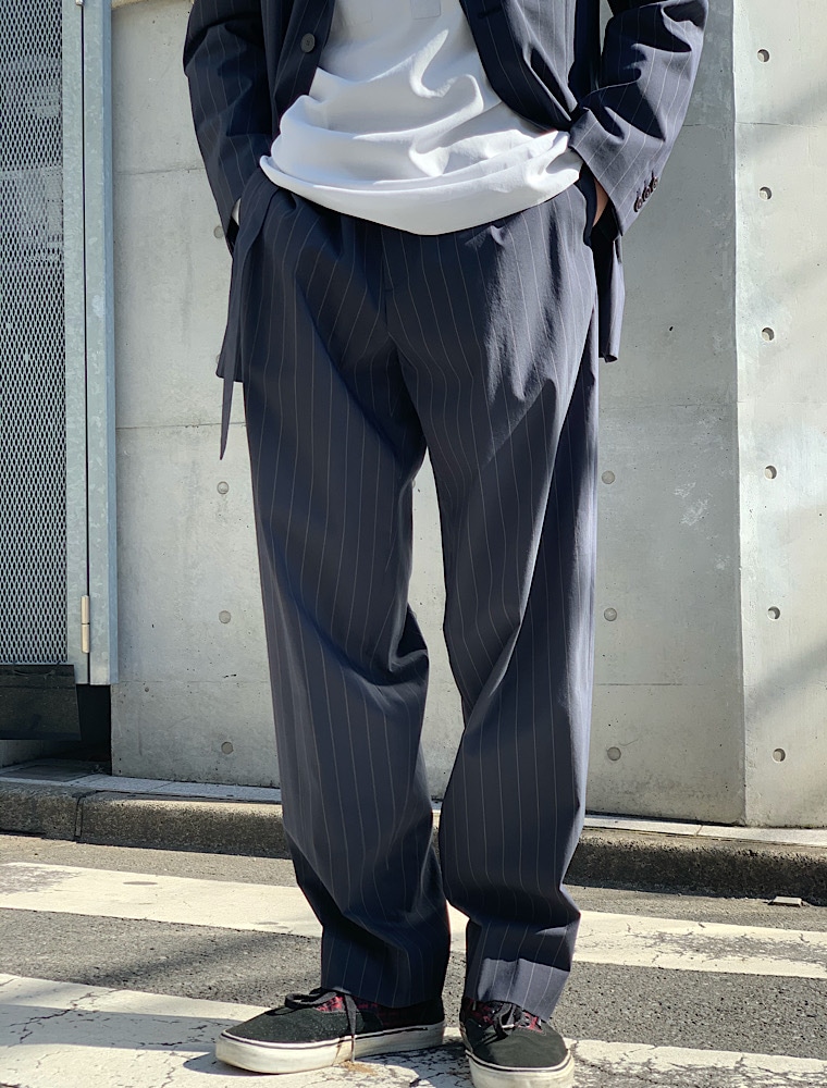 着用アイテム:ジャケット 身長:178cm / 普段サイズ:M / 着用サイズ:4 サイズ感:ジャケットはややゆとりのあるサイズ感で縦長なシルエット。 素材感:伸縮性に優れたコットンナイロン素材。 着心地:ストレッチに優れているのでストレス無く着用できる。 着用アイテム:パンツ 身長:178cm / 普段サイズ:M / 着用サイズ:4 サイズ感: 腿周りにゆとりがあり、裾に向かって細くなるワイドテーパードシルエット。 素材感: 伸縮性に優れたコットンナイロン素材。 着心地:ストレッチ性に優れているので動きやすくストレスなく履ける。