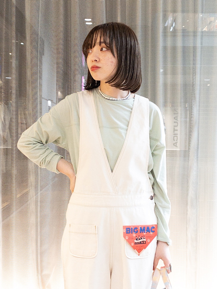 サイズ感:腰、ヒップまわりはゆったりしてます。サスペンダー部分は少し長めですが、小柄な方がカジュアルにラフに着て頂くのも素敵です。