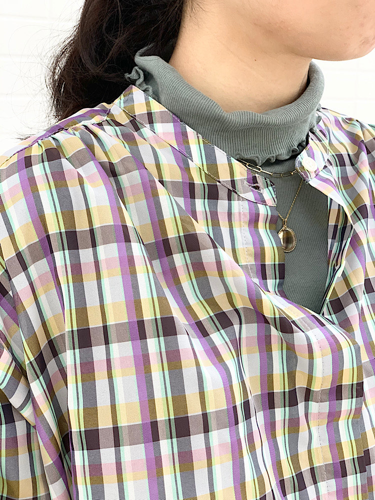 着心地:軽く着やすく透け感もあるので春先に活躍してくれるアイテムです。袖のボリュームも程よい感じです。