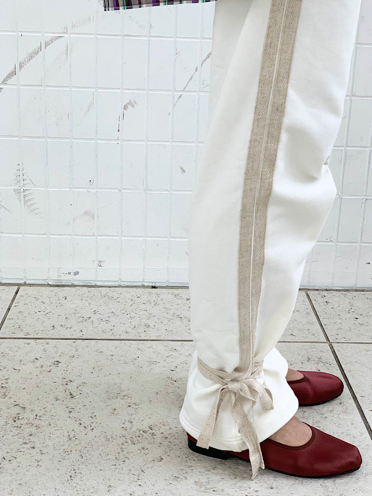 着心地:裾にリボンもついていてアクセントになります。動きやすく楽に履いていただけます。