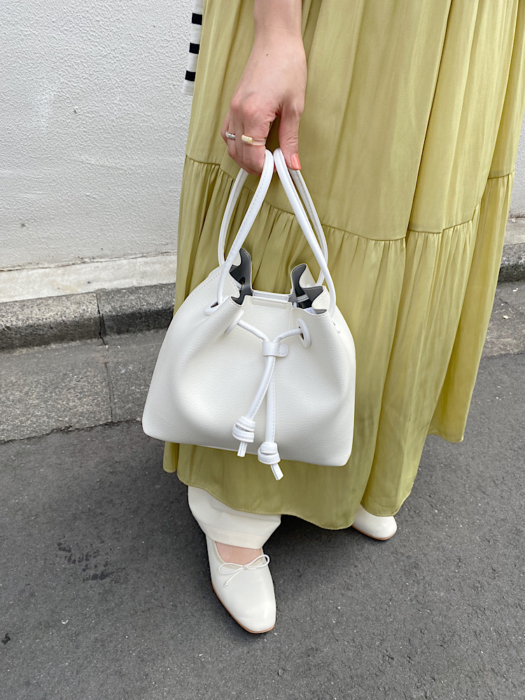 無地ワンピにボーダーの柄をON。メリハリのあるスタイリングにしました。