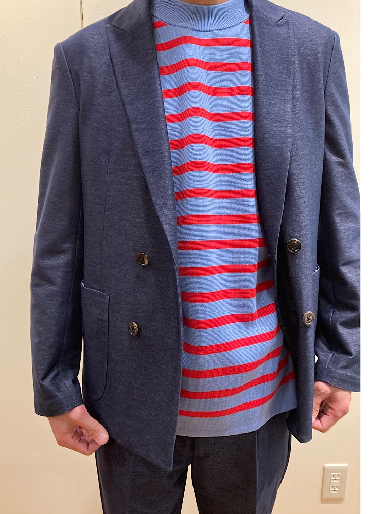 素材感・着心地:ややガシッとしたコットンニットなので通年活躍する。