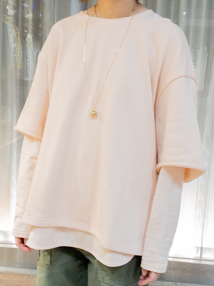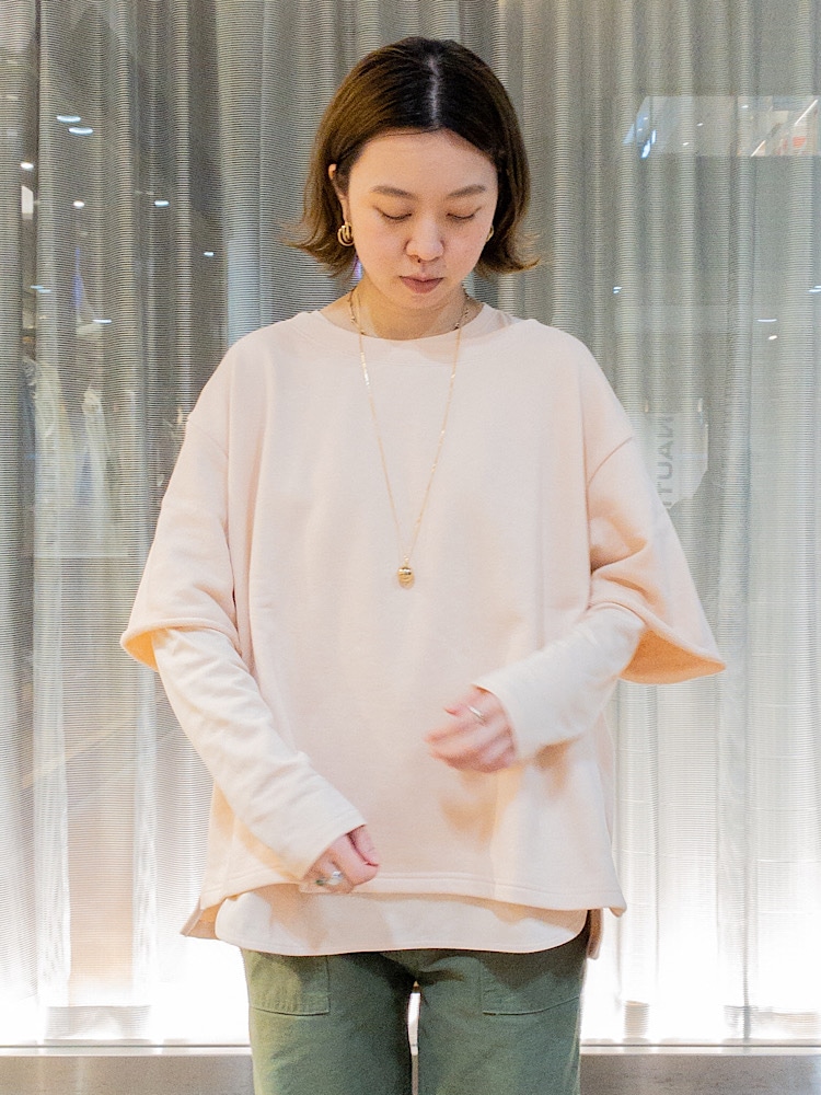 素材感・着心地:柔らかいコットン素材。元々長袖のカットソーとレイヤードになったトレンドトップス。別々でも使えるので長く楽しめます。