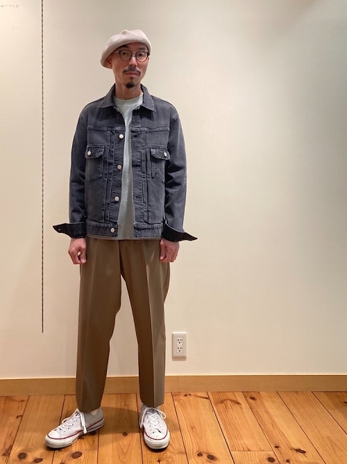 素材感:着初めは固めのしっかりとした生地感ですが、着込むほどに馴染んでいきます。