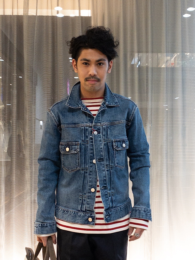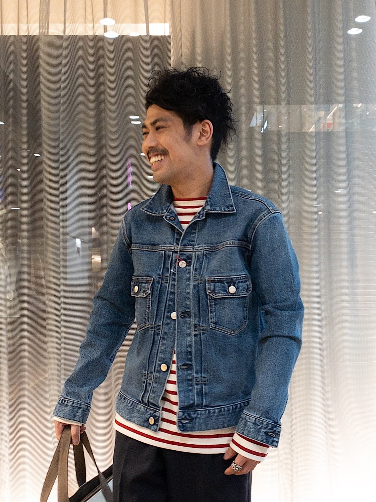 素材感・着心地:しっかりしたデニムなので、パリッとする。少し余裕もあるので、トレンドぶりに着れるアイテム。
