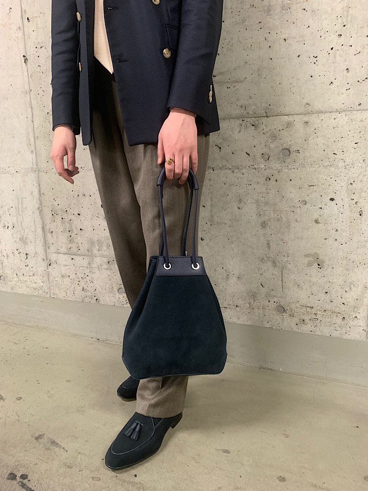着用レビュー バッグとシューズを同素材でまとめ、統一感を持たせました。