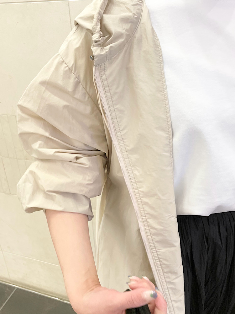 着心地:撥水加工がとにかく嬉しい!フード付きなので突然の雨も防げますね