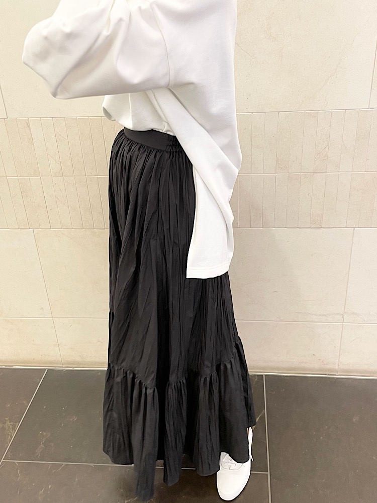 着心地:サラッとした質感。程良いボリュームでシンプルなトップスとの相性が良いです。
