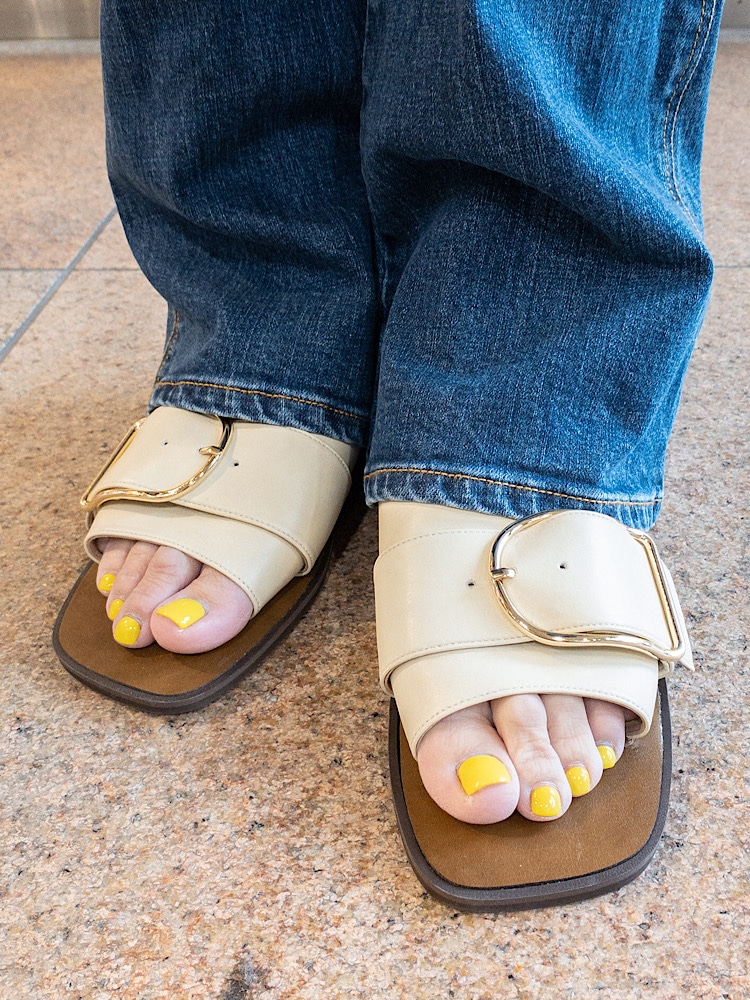 短めにして着用し、フラットシューズで