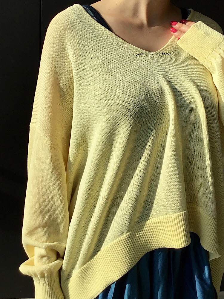 すっきりと首元があいたVネックのニットは、清涼感のある生地でとっても爽やかです。