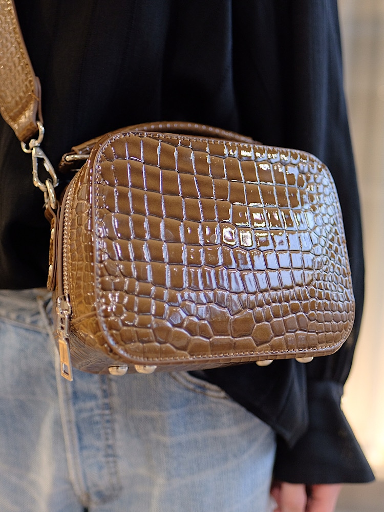 バックのアセテート素材のツヤ感と