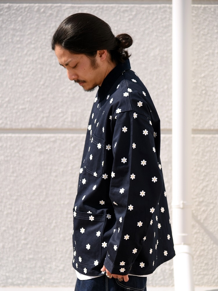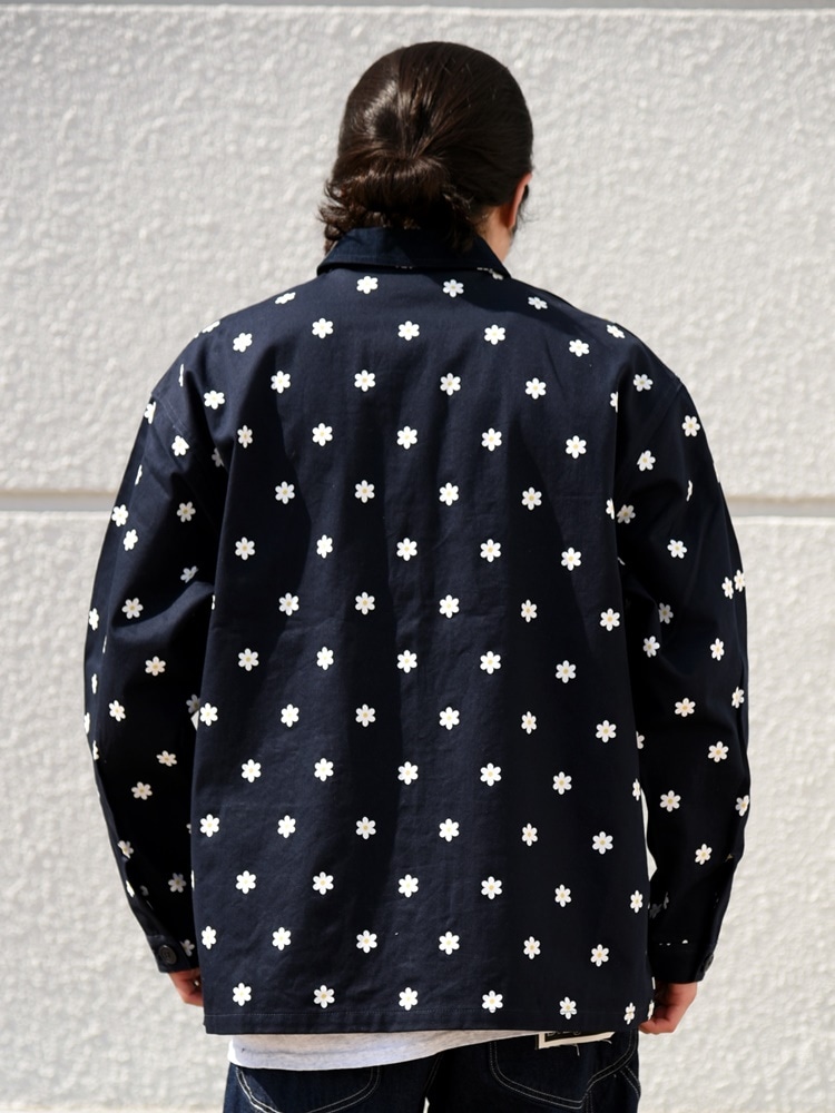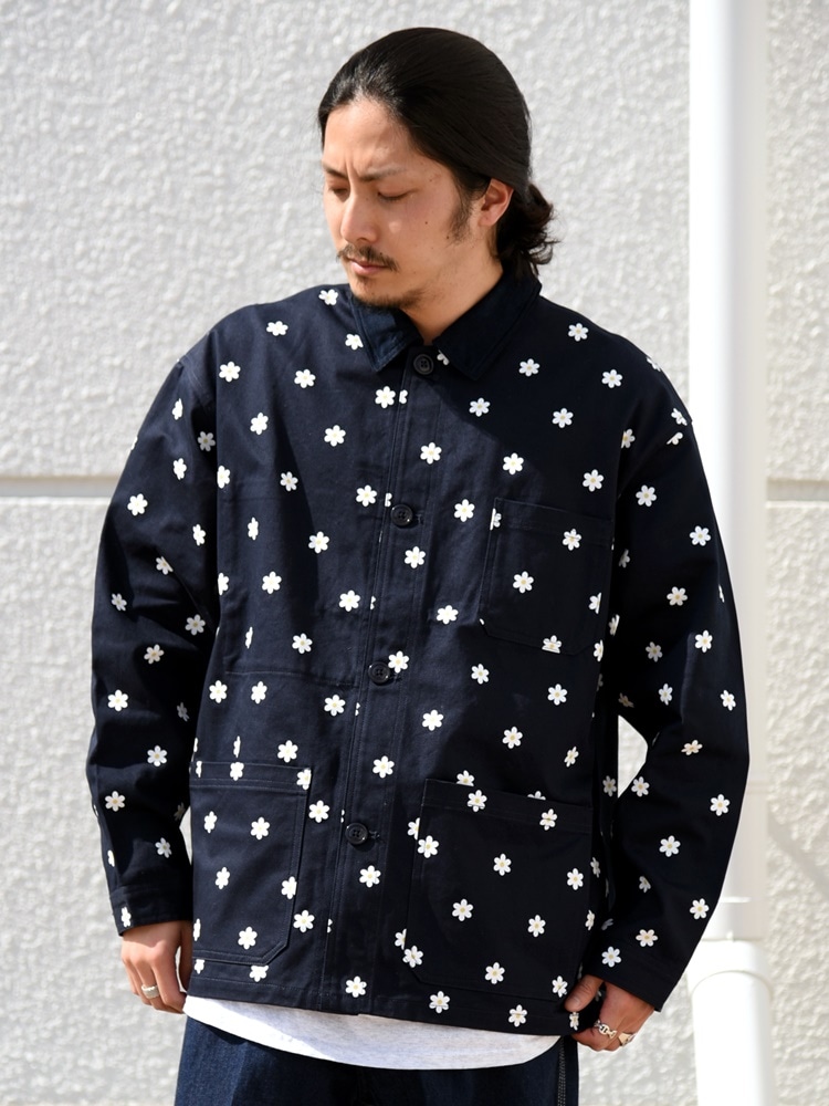 大胆にあしらった総柄のデイジープリントが目を惹くカバーオール