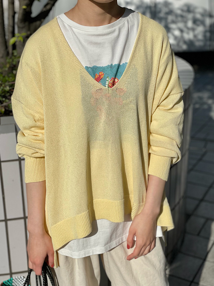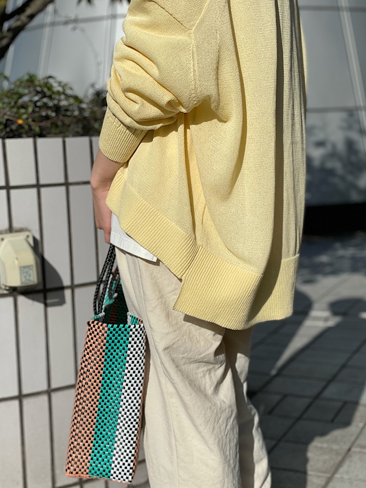 素材感:薄手で軽い素材感なのでニットでも長いシーズン使えそうです。