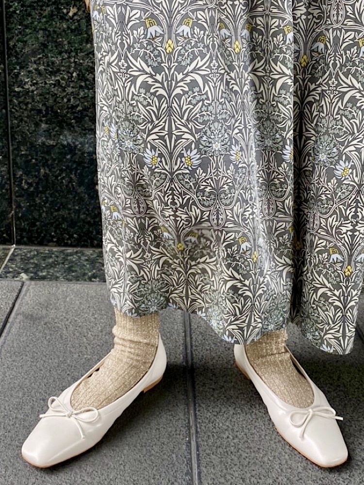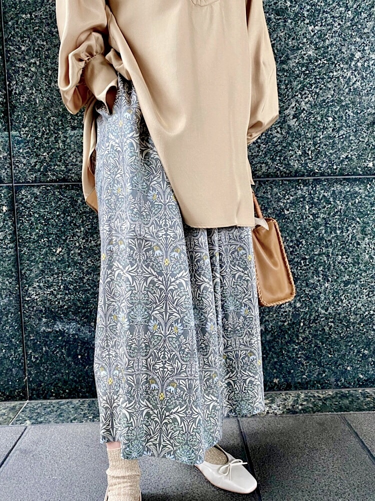 着るだけで今年顔になれるブラウスは柄合わせでオシャレを楽しんで。