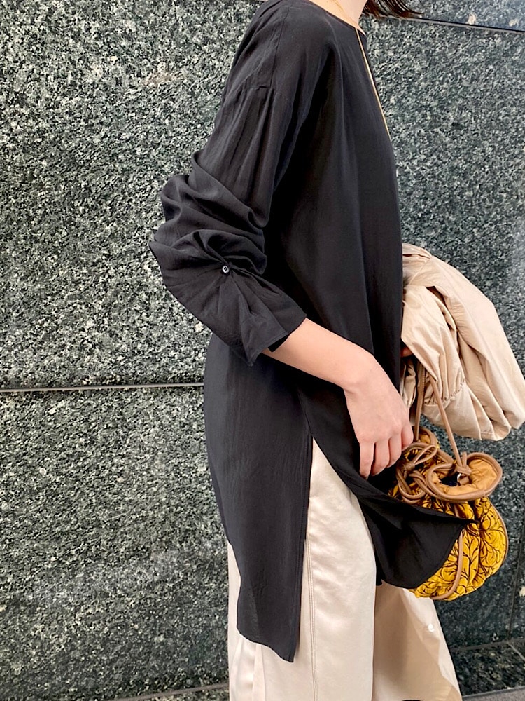 サイズ感:着丈長く程よくゆったり。落ち感があるので着膨れしません。