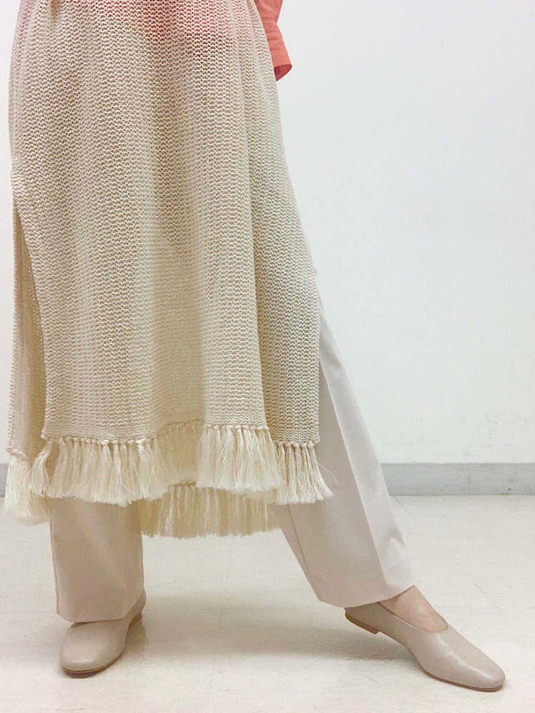 サイズ感: セミワイドの程よい太さ。フラットシューズでちょうど足首の丈感。