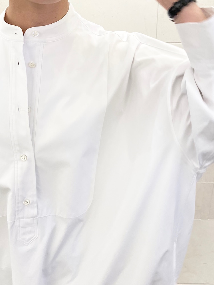 サイズ感 : ドロップショルダーで身幅はかなりゆったりしています。袖は短め。首元はしっかり詰まっているデザインです。