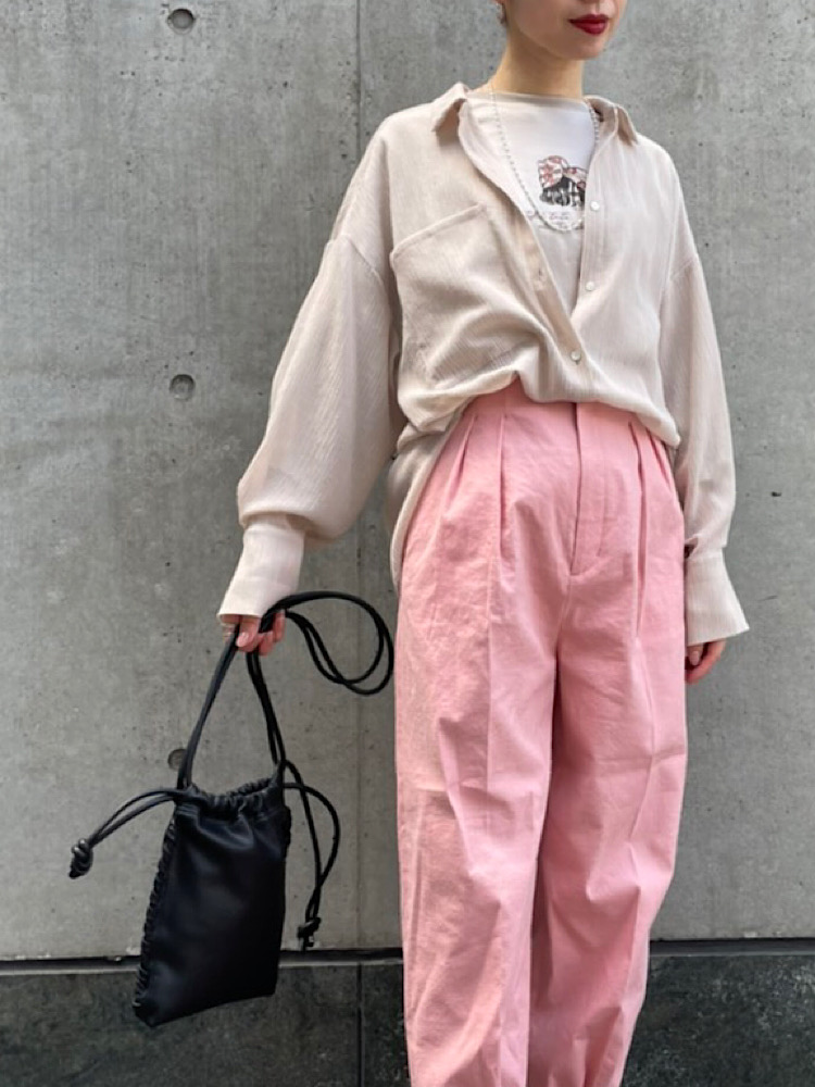 サイズ感:身幅広めでザックリ。着丈は160cmでヒップが隠れるくらいです。