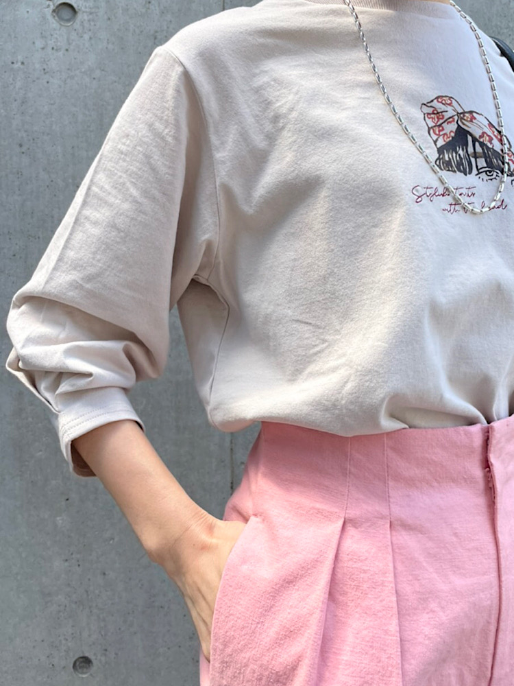 サイズ感:程よいゆとりがあり、ボディラインを拾いません。着丈も長過ぎずインしてもごわつきません。
