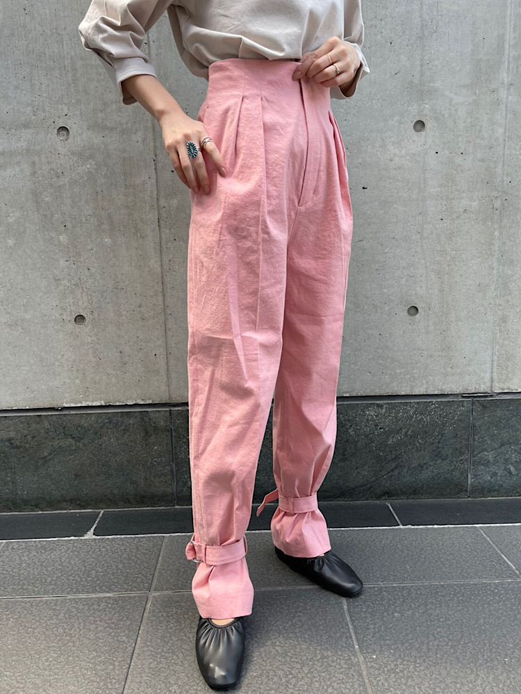 素材感・着心地:麻メインでパリッと張りがありますが、セルロースとポリウレタンで伸縮性がある為履きやすいです。裏地も無く涼しいです。