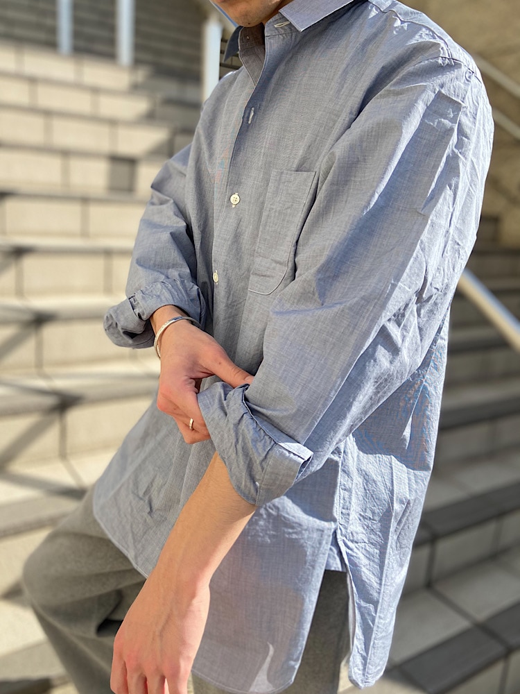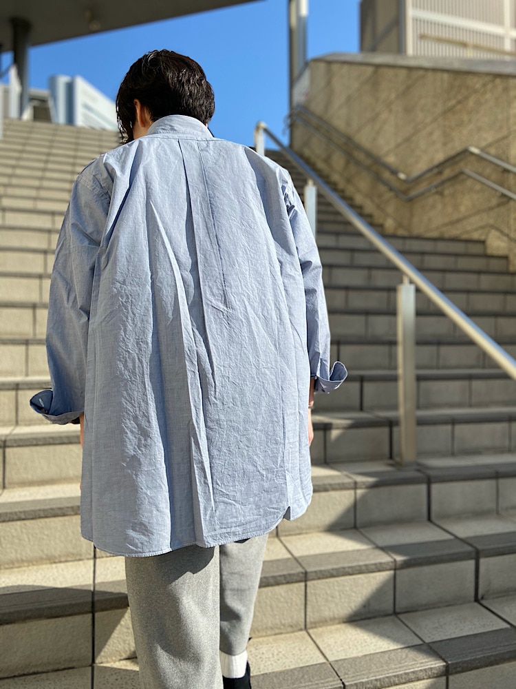 サイズ感 : 大きめのサイジングで、着丈が長めに取られています。肩幅は少しゆとりがある程度です
