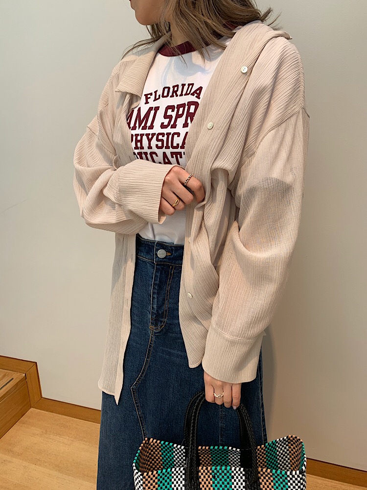 サイズ感:全体的にゆとりのあるシルエット。着丈は腰まわり隠れるくらい。